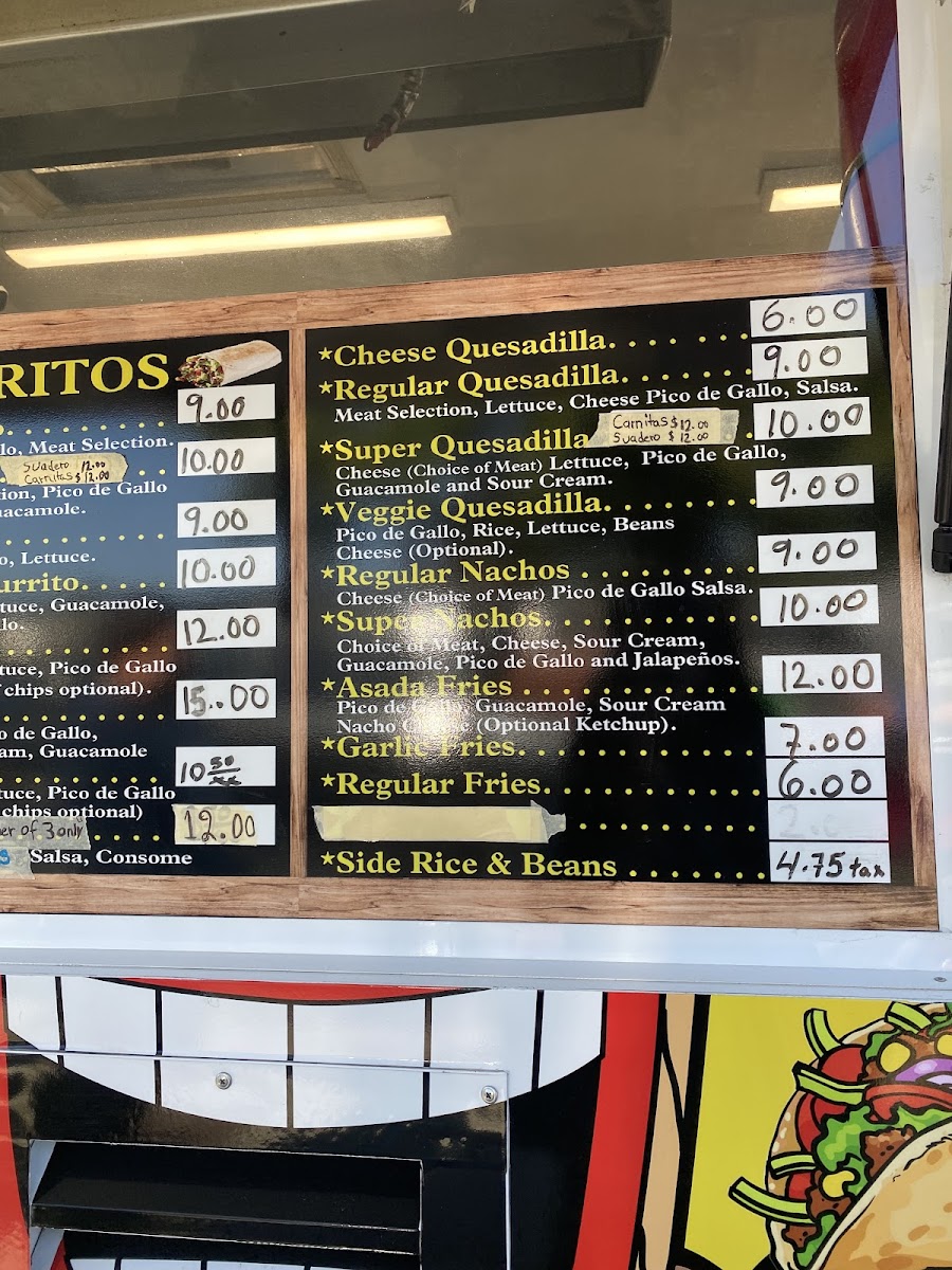 Cheese, choice of meat, pico de gallo, salsa guacamole sour cream.
