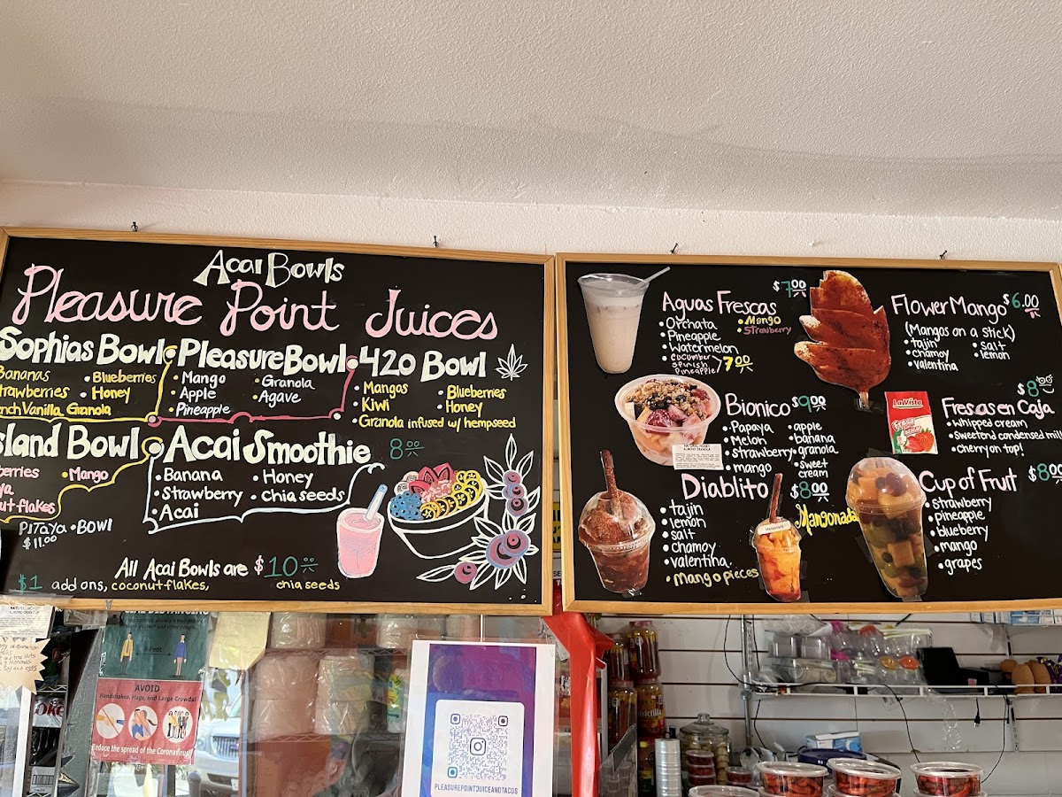 Located in the heart of Santa Cruz, Pleasure Point Juice offers a delightful fusion of vibrant flavors and fresh ingredients that elevate the typical juice shop experience. The menu features an array of enticing options, from hearty burritos like the Cali Burrito stuffed with beans, cheese, and guacamole, to refreshing açaí bowls brimming with tropical fruits such as mango, blueberries, and papaya.
